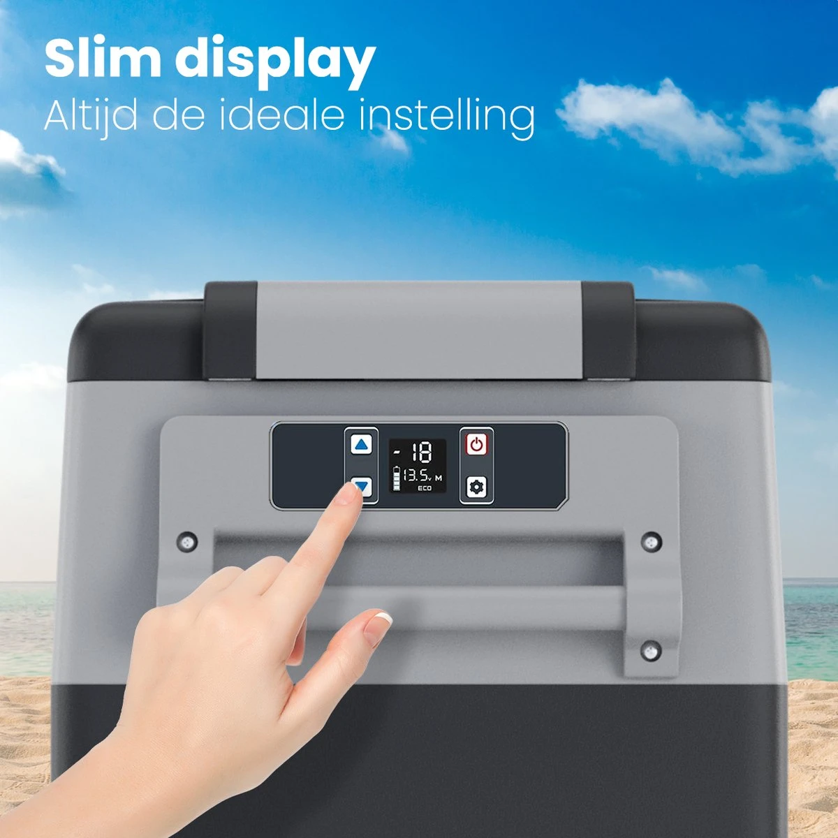 Geniet van een heerlijk dagje weg met deze krachtige Elektrische Compressor Koelbox van Auronic! Dankzij de capaciteit van 49,5 liter kun je maar liefst 60 blikjes koel houden, je hoeft je daarom geen zorgen te maken dat jouw drankjes of snacks gedurende de dag warm worden. Het robuuste en schokbestendige ontwerp zorgt ervoor dat jouw inhoud onderweg altijd veilig is. Het beste van alles is dat de koelbox wordt geleverd met elektrische stekkers die werken op 12/24V en 240V, zodat je er zeker van bent dat je de koelbox altijd van stroom kunt voorzien. Kies uit de vijf standen: Vriezer, Normaal, Koud, Eco en Max!