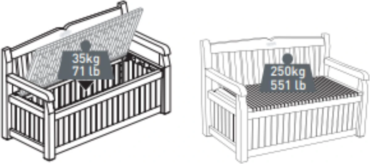 Bespaar veel ruimte in je tuin met de Keter Eden Garden Bench Opbergbank. Dit tuinmeubel is zowel een opbergbox als een tuinbank. De waterdichte bank biedt plaats aan twee volwassenen en heeft een ruim opbergvak van 265 liter. Ideaal om je tuinaccessoires droog en geventileerd in op te bergen. De opbergbox is volledig afsluitbaar.