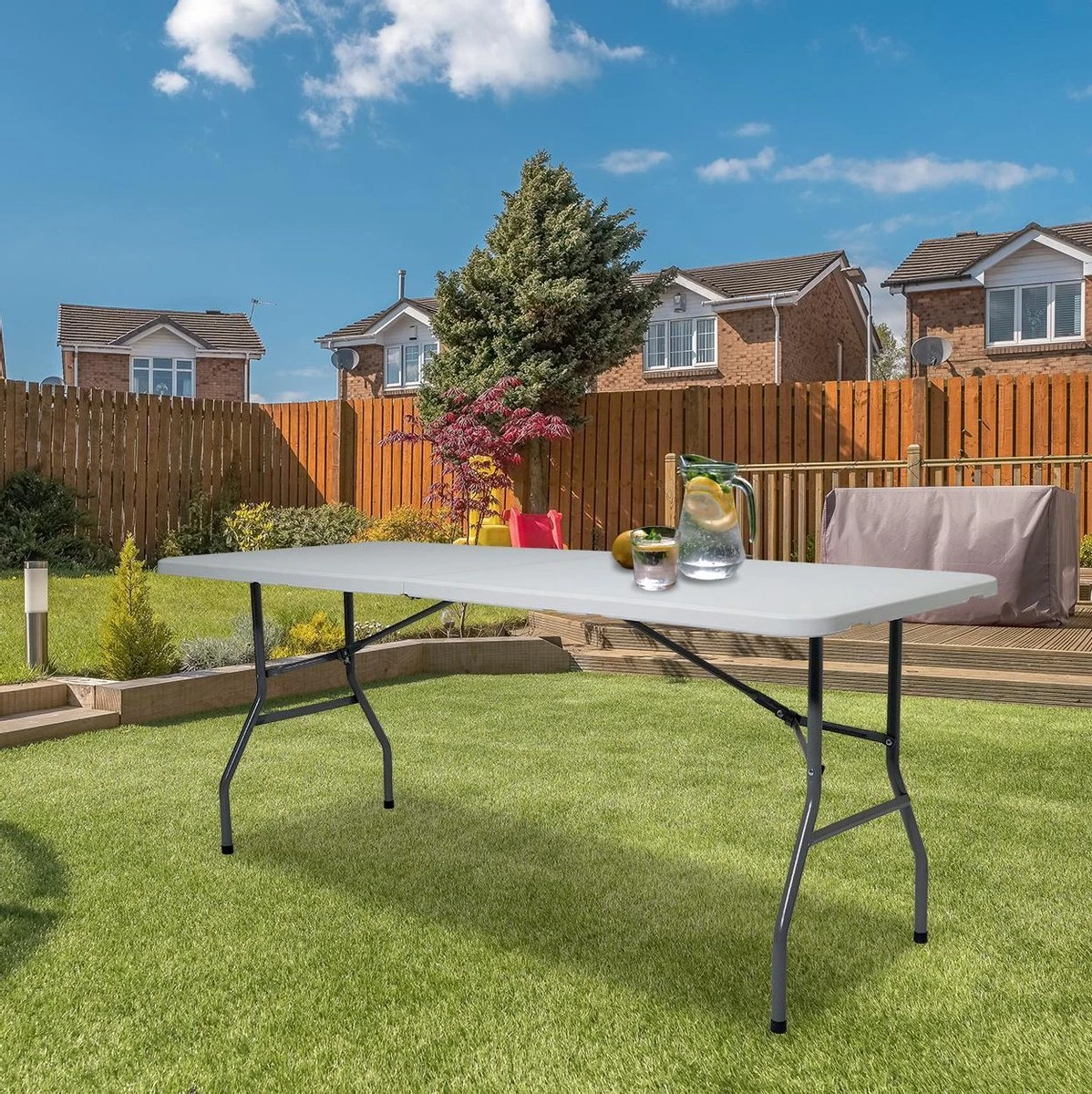 Ga je met het hele gezin barbecueën in de tuin? Of is er iemand jarig? Dan is de klaptafel van LifeGoods de perfecte oplossing! Het tafelblad heeft een afmeting van 180 bij 70 cm waardoor er meer dan genoeg ruimte is voor 6 tot 8 personen. Doordat de klaptafel weer- en corrosiebestendig kun je de tafel zonder zorgen het hele jaar buiten gebruiken. De klaptafel heeft een stevig metalen frame en een draagkracht van wel 120 kg. Je klapt de tafel binnen een paar seconden eenvoudig uit.